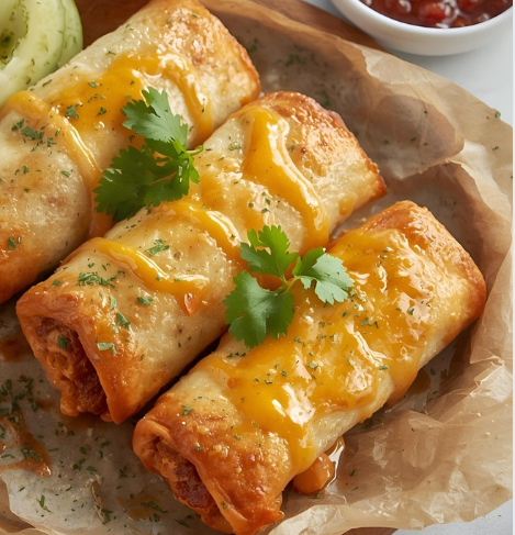 - Place chimichangas on a lined baking sheet. Melt 2 Tbsp of butter and brush over the tops of the chimichangas (this will mimic the crispiness experienced in deep frying).