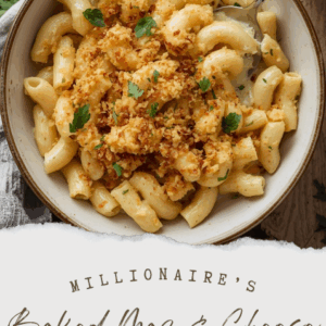 This rich, old-fashioned baked mac and cheese hails straight from the 1950s, found in a clipping in my grandmother’s recipe box—a time when comfort food was king and recipes like this were served with pride at Sunday dinners. Known as “Millionaire’s Macaroni and Cheese,” it’s an indulgent twist on the classic, featuring layers of creamy sauce, real butter, and plenty of sharp cheddar baked until golden and bubbling. It’s the kind of recipe that proves simple ingredients, handled with care, can taste like luxury.