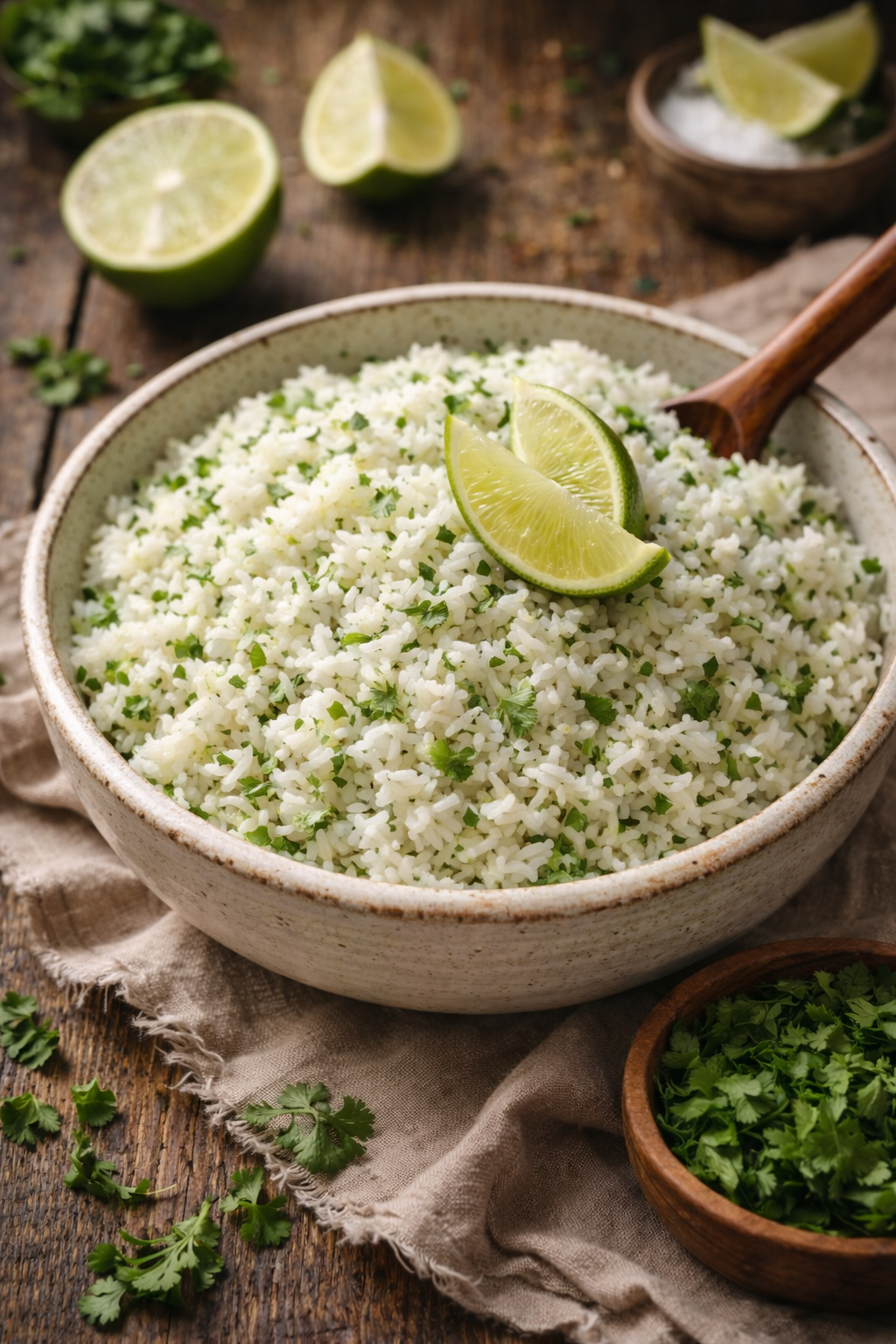 When the time is up, remove the lid and gently stir the rice, fluffing it up slightly. Add the cilantro, lime, and a pinch of salt. Stir gently to mix and taste, adding more salt if desired.